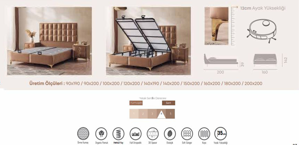 Die Höhe von ca. 35–36 cm erhöht den Liegekomfort.